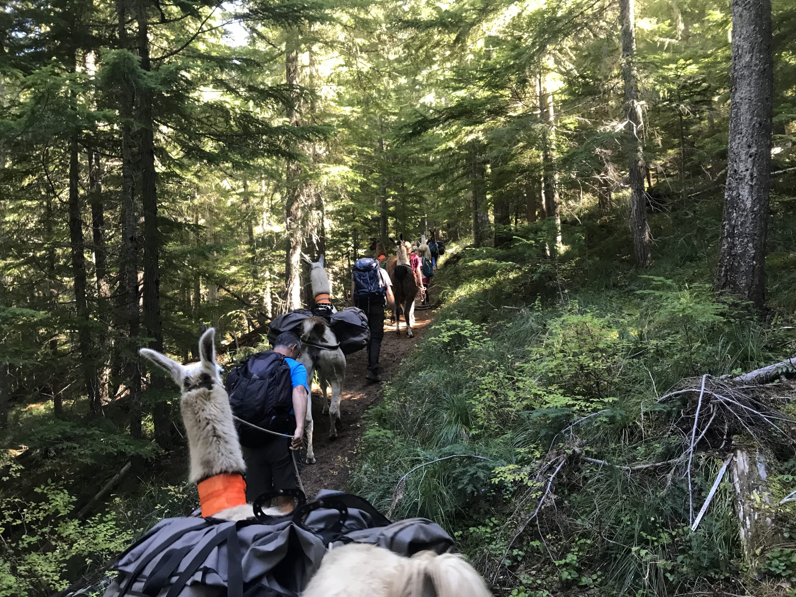 Alpine lakes, timberline trails, glacial views, lava formationa dn all the flora and fauna that goes with is what you can experience while trekking with your llama in the Cascade Mountians of Washington near the Columbia River Gorge Scenic Area. Your llama will become your new best friend as you trek down the trail together. Bring a hearty lunch, extra jacket, binoculars or whatever you might need and let your willing llama carry it all in for you. There will be plenty of time for llama selfies with extrodinary views in the quiet of the forest. you bring your own sack lunch, snacks, beveragte and your sure footed llama will do all of the heavy lifting! Lets hit the trail and enjoy a day in nature with the llamas.