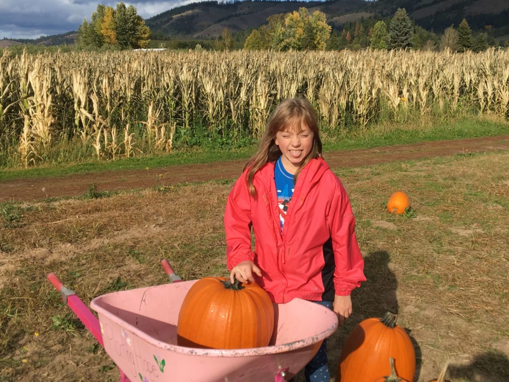 For the past couple of years, our family has made it a tradition to drive from our house across the Columbia River and south of Hood River, Oregon just a couple of miles to the Packer Orchards Pumpkin Patch where there is so much more than just pumpkins. We spend a couple of hours goofing off and being silly and Packer Orchrds makes it all super easy with a multitude of fun do-it-yourself activities. Off the top of my head, I’d say there were no less than a dozen different activities on the farm. Each one is hands on and interesting in its own way. Just for grins, I’ll recap the fun our family had just last October.
